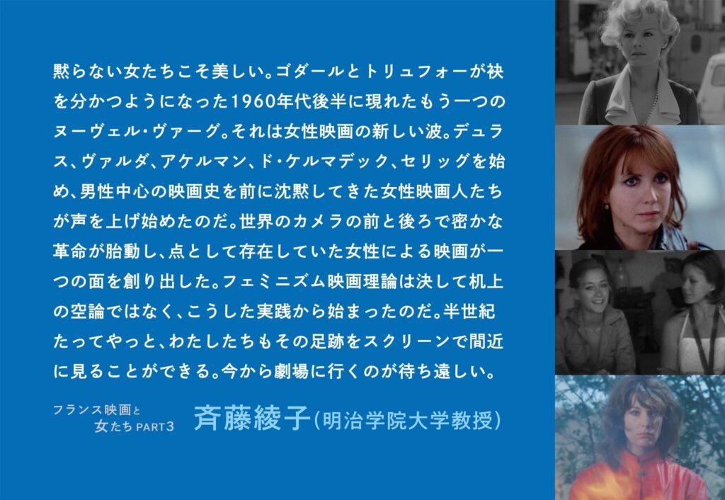 特集上映「フランス映画と女たち」は、2023年にはアテネ・フランセ文化センターと映画館Strangerにて、2024年には東京日仏学院エスパス・イマージュにて開催され、多くの方々にご来場をいただきました。
